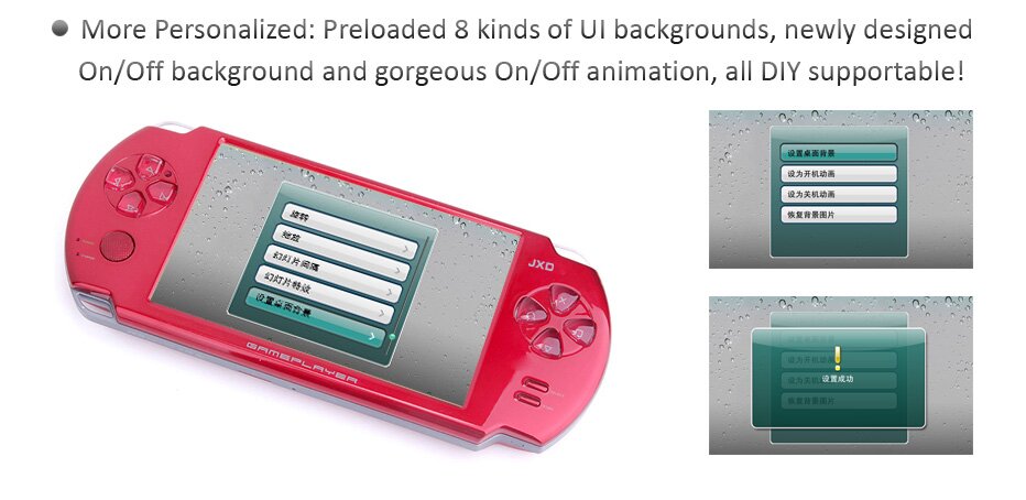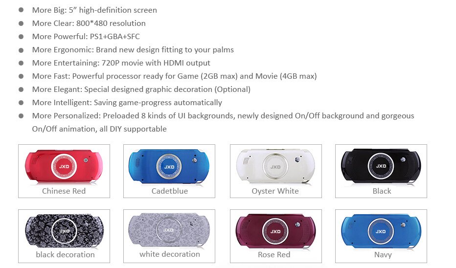 Device JXD5000, User Manual, Stereo earphone, USB cable, AV Cable, Charger |