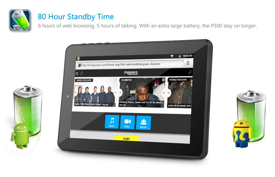 Plays back 720p and 1080p files, supports Adobe Flash, WAV, MP3, MP2, AAC, AMR-NB, MIDI, Vorbis, APE, etc. |